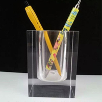 ที่ใส่ปากกาคริสตัลใสพร้อมนาฬิกาแกะสลักโลโก้ที่กำหนดเองผลิตภัณฑ์งานฝีมือคริสตัลที่สง่างาม
